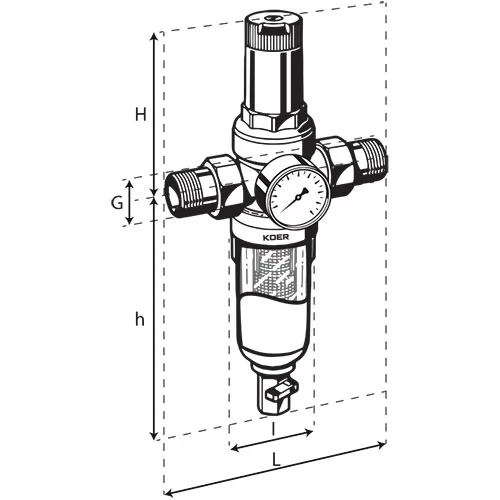 Фільтр із редуктором тиску та манометром KR.1249 являє собою комбінацію промивного фільтра з клапаном зниження тиску для безперервного водопостачання. Вони оберігають від потрапляння у водопровідну систему таких сторонніх тіл, як частинки іржі, піщинки та ін. Інонодні частинки, зібрані всередині колби фільтра можуть бути легко видалені за допомогою промивання. Клапан зниження тиску дає змогу уникнути пошкоджень, спричинених підвищеним тиском і зменшити витрату води.